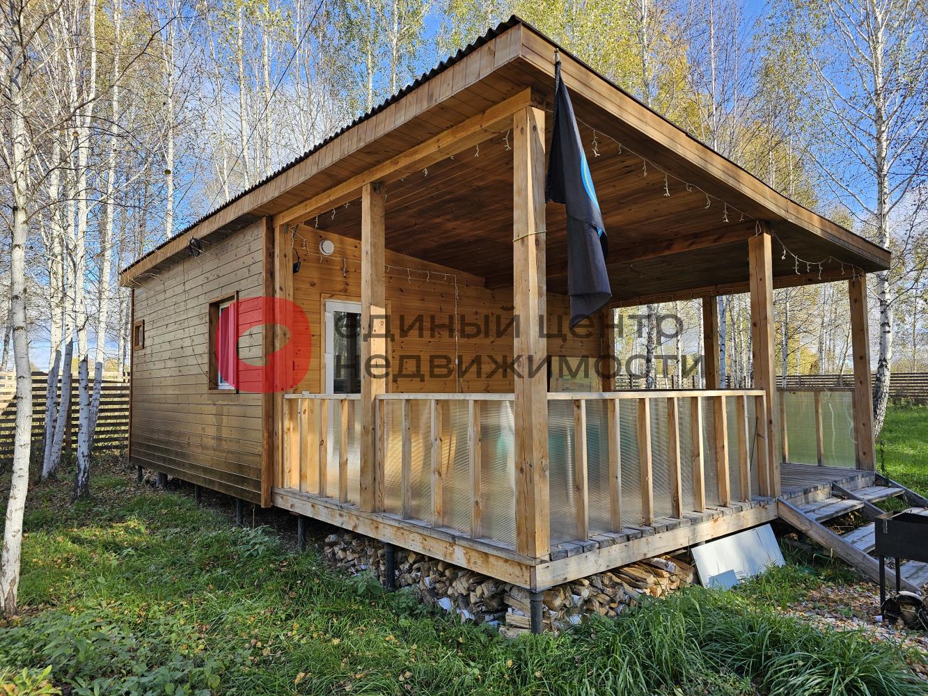 На территории поставлен новый каркасный дом площадь 30,5 м2 с просторной террассой.