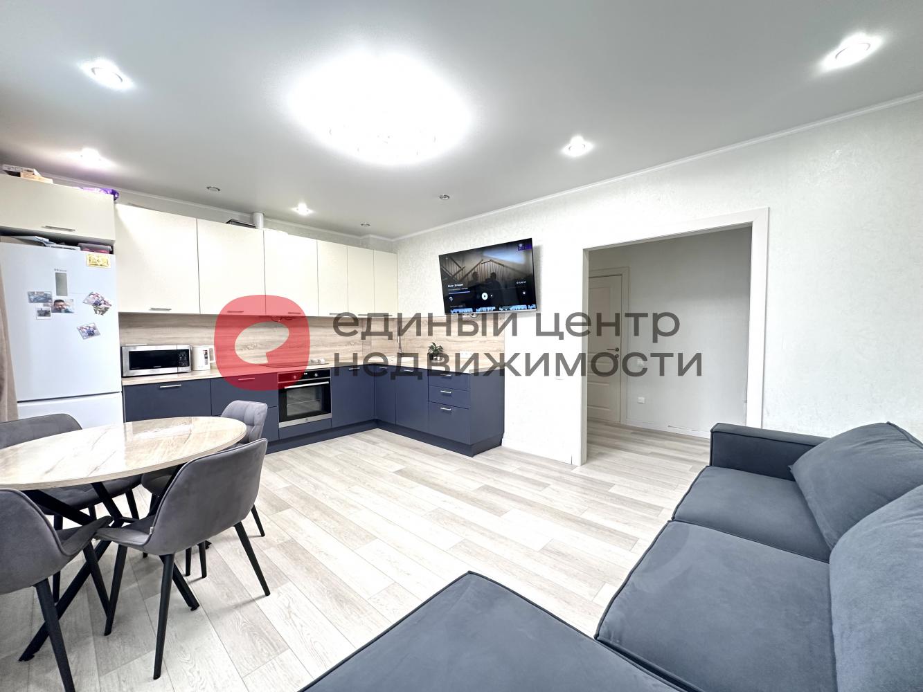 • Просторная кухня-гостиная: Идеальное место для совместного времяпровождения, семейных ужинов и приема гостей. Здесь вы найдете современный кухонный гарнитур, обеденную группу, холодильник, плиту, духовой шкаф и микроволновую печь. Зона гостиной оборудована мягким диваном и телевизором.